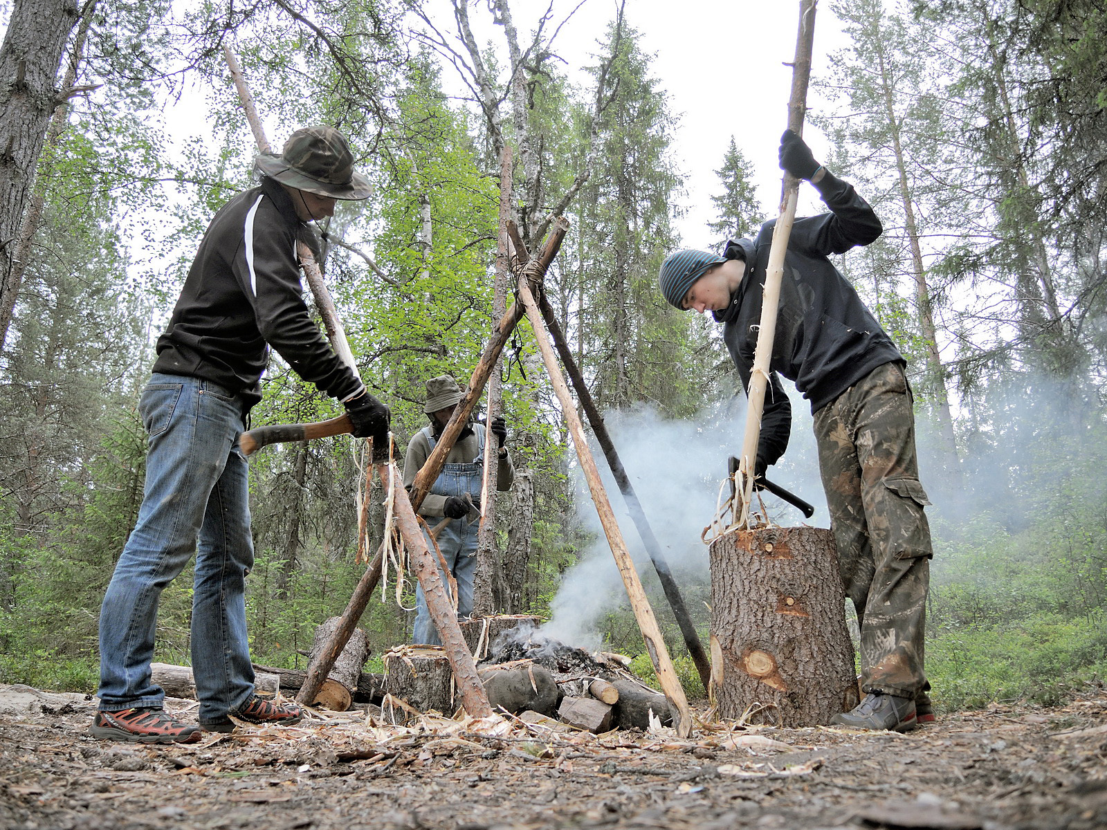 Первый день экспедиции. Погода порадовала редким в это лето солнышком и теплом, все были энергичны и веселы. Установив палатки у водопада, отправились на поляну, где запланирован мемориал «Память Колвицы» по проекту Валентина Мыздрикова, приступили к разметке. Работы было много, даже не верилось, что успеем всё.